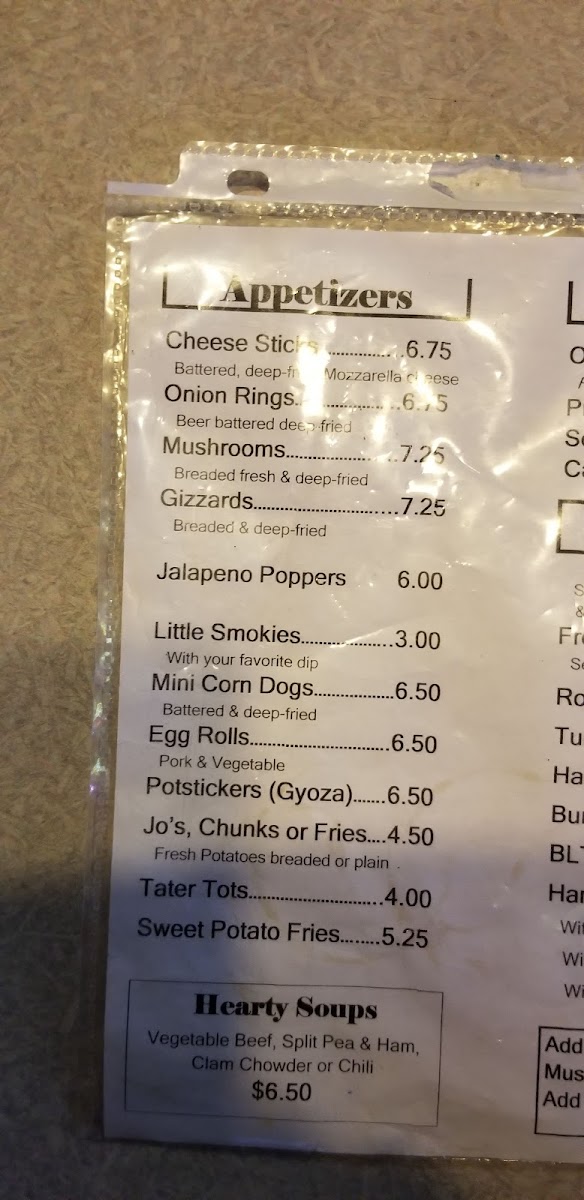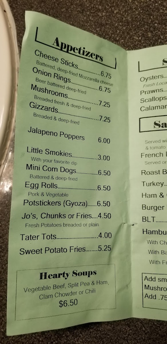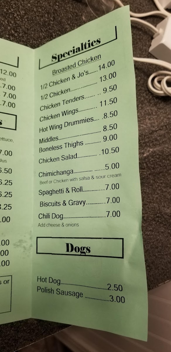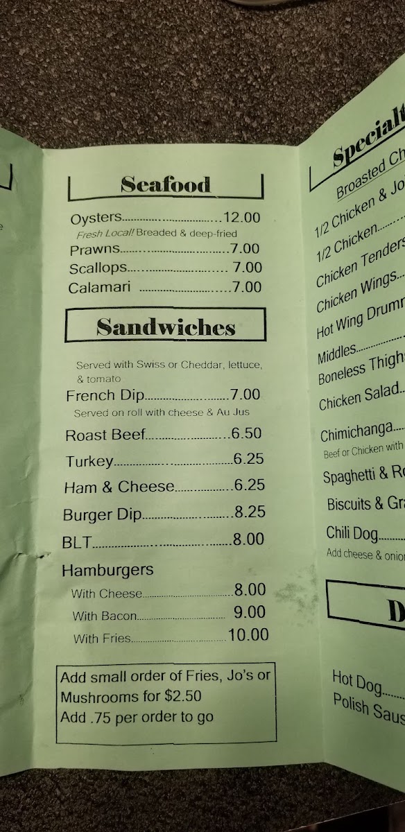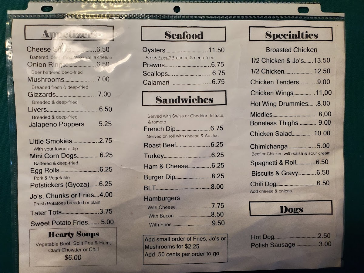 The highlight of the menu includes mouthwatering options like fried chicken, famous for its juicy flavor and generous portions. Savor the delicious JoJo’s or explore enticing starters like mini corn dogs and onion rings. Seafood lovers can indulge in freshly breaded oysters and calamari strips.